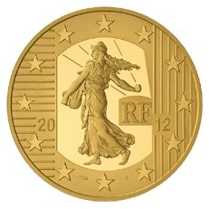 La Semeuse de 2012 em Ouro, emitida este ano pela Monnaie de Paris, homenageia os 10 anos da introdução do euro. O valor facial será de 5€, com um peso de 5gramas, Ouro .999 e tiragem de 10.000 moedas.